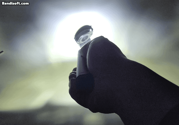 만약 고무버튼을 따닥 빠르게 두번 눌러주면 빠르게 깜빡 거리는 플래시 모드로 전환됩니다. 거기서 또 따닥 빠르게 두번 눌러주면 플래시가 깜빡거리는 속도가 느려집니다. 거기서 또 다시 따닥 빠르게 두번 눌러주면 원래의 기본적인 지속적인 빛이 나오는 모드로 돌아옵니다.