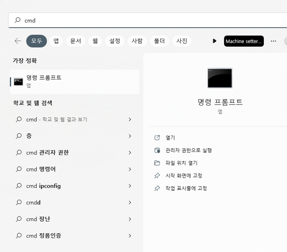 1단계 : CMD 창을 띄워서 명령어를 입력해 줍니다.