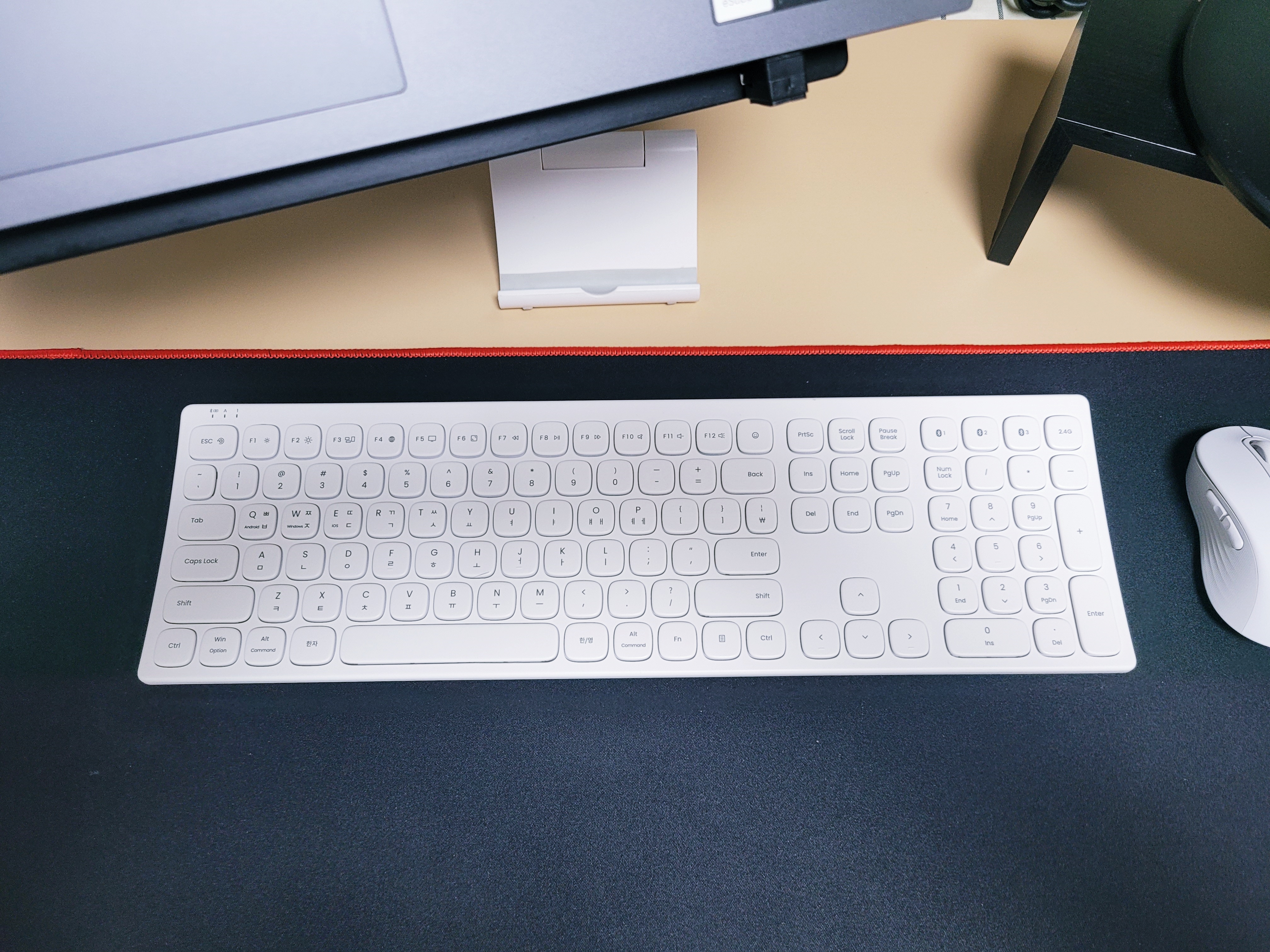 엑토 커브드 키보드는 슬림하고 깔끔한 디자인과 색상을 가지고 있어서 데스크테리어에도 좋을 것 같습니다.