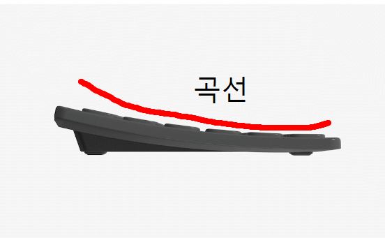 실사용을 하면서 그 곡선의 형태가 키보드 타건시 편안함을 주는지는 크게 인지할 수는 없었습니다. 개인적으로 불편하지도 않고 그렇다고 곡선의 편안함을 크게 느끼지도 않았습니다.