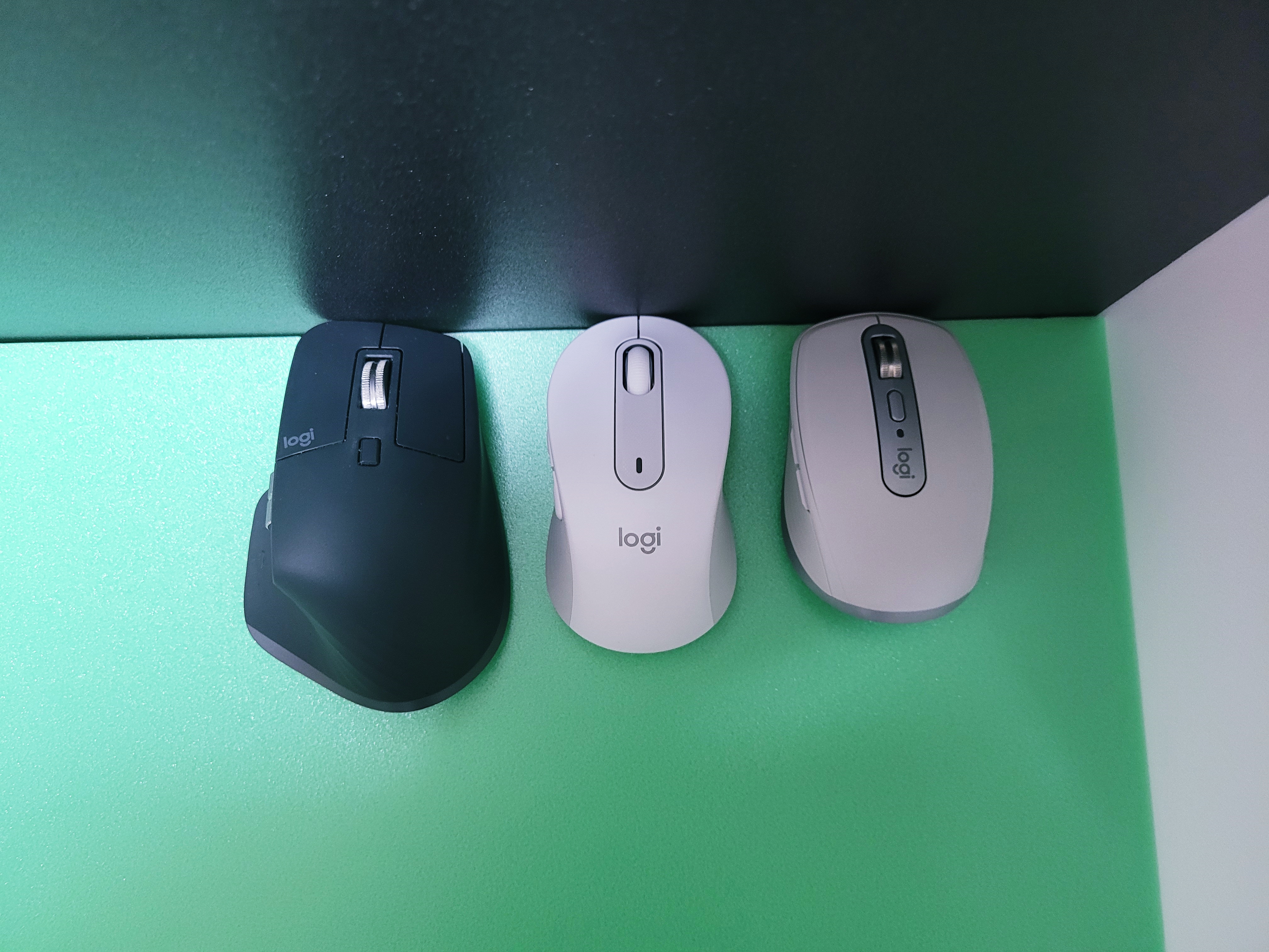 오른쪽의 MX애니웨어3S 마우스의 높이가 가장 낮은 것을 볼 수 있습니다.