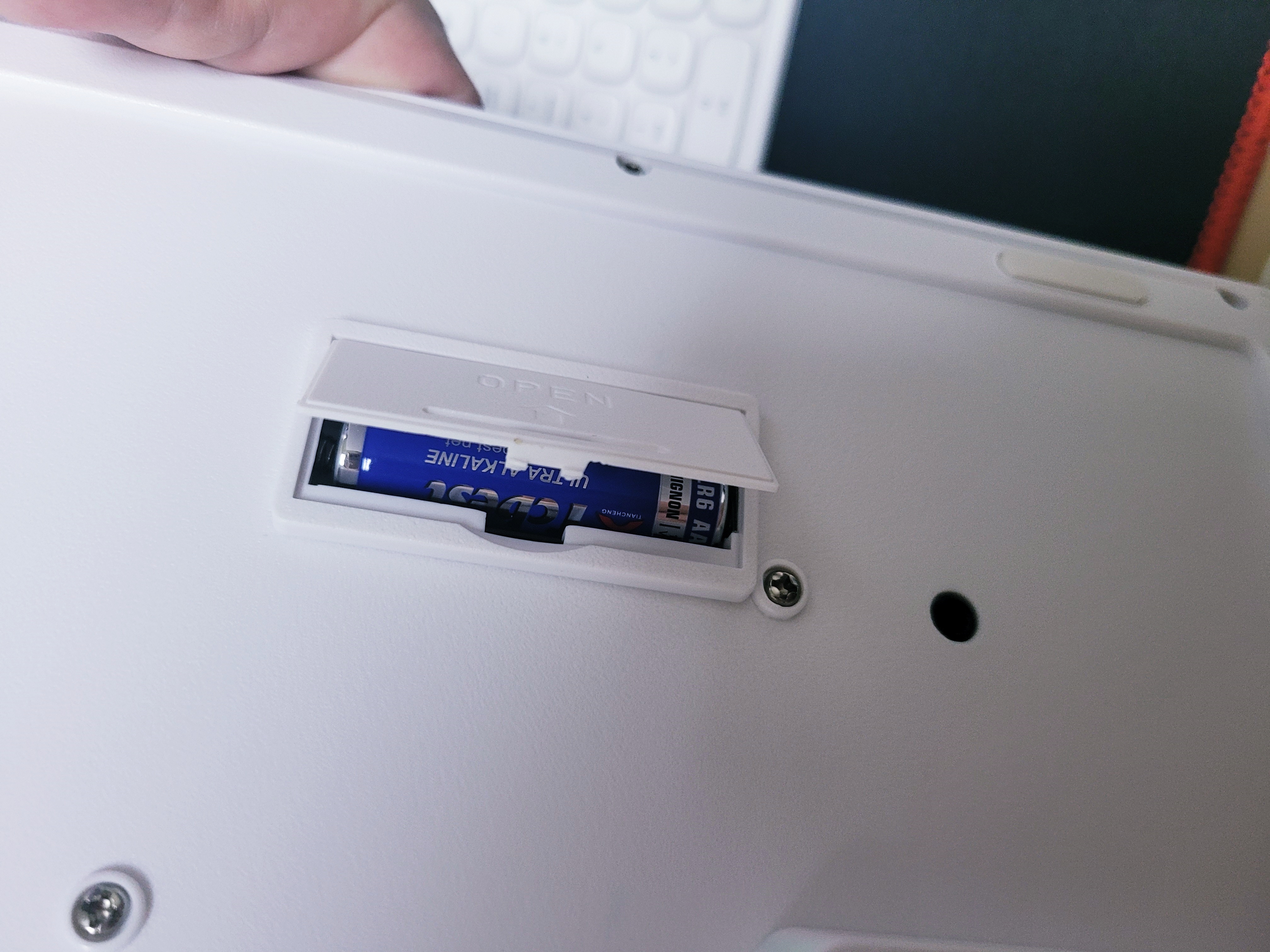 DT35W 키보드는 다른 방식의 연결 방법은 없고, 오직 무선 연결 기능만 지원합니다. 보통 요즘 시중에 출시되는 키보드들은 무선과 유선을 동시에 지원하는 경향이 있는데, DT35W는 무선만 지원합니다. 유선 연결을 할 수 있는 C-TYPE 포트 자체가 없고, 건전지를 넣는 방식입니다.
