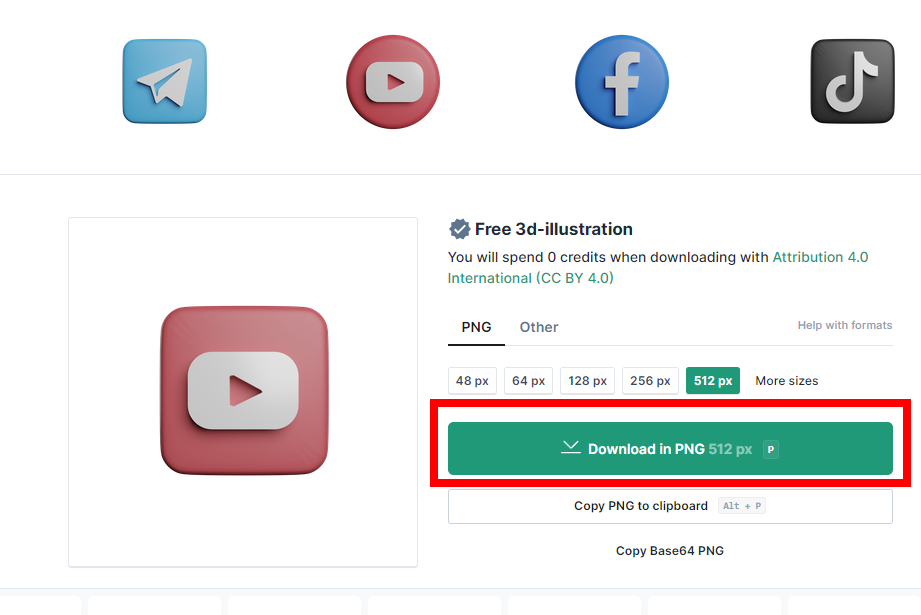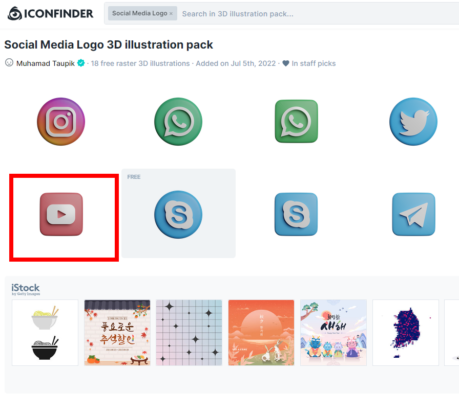 이 유튜브 모양의 아이콘을 다운받아 보겠습니다.