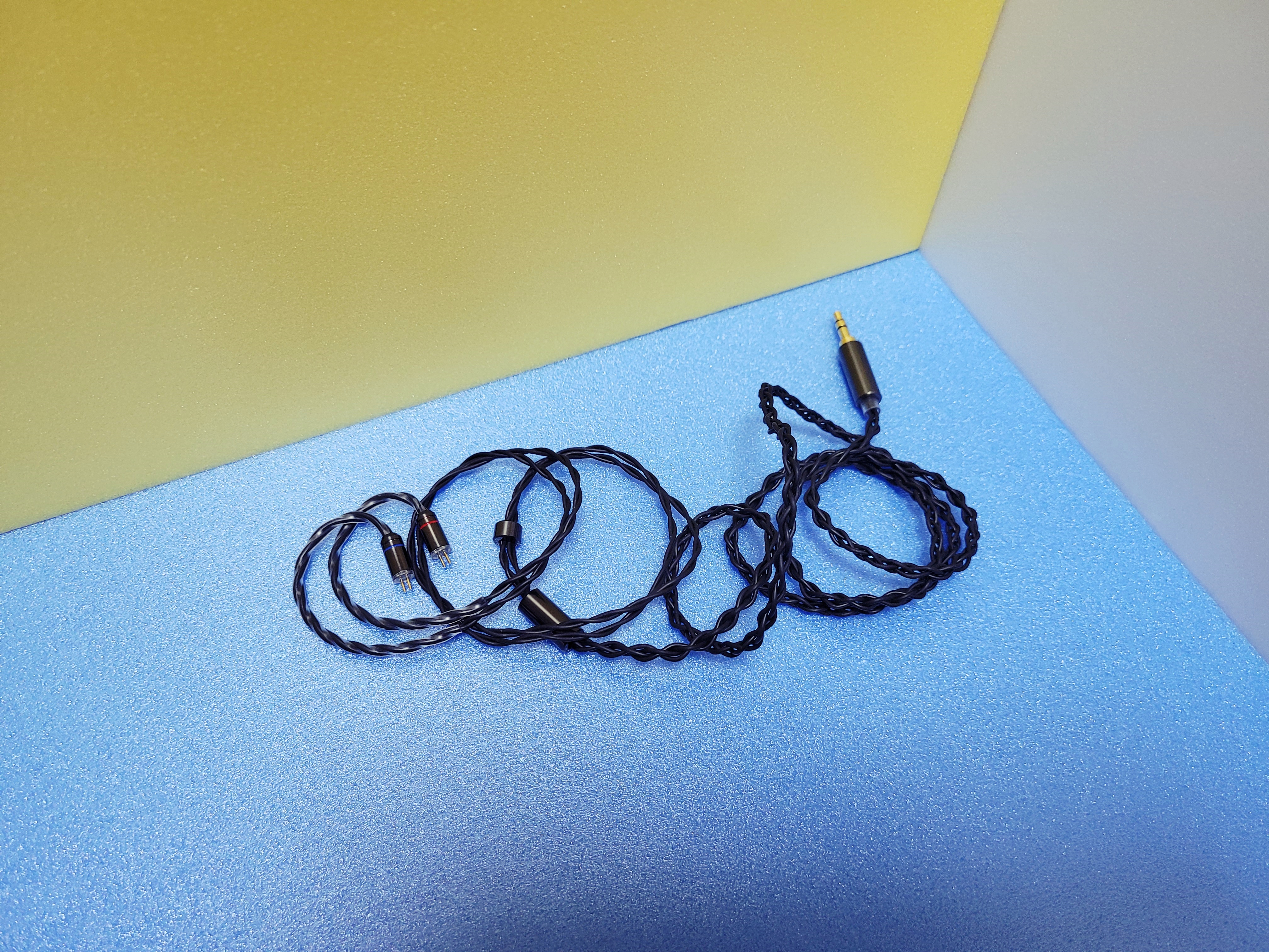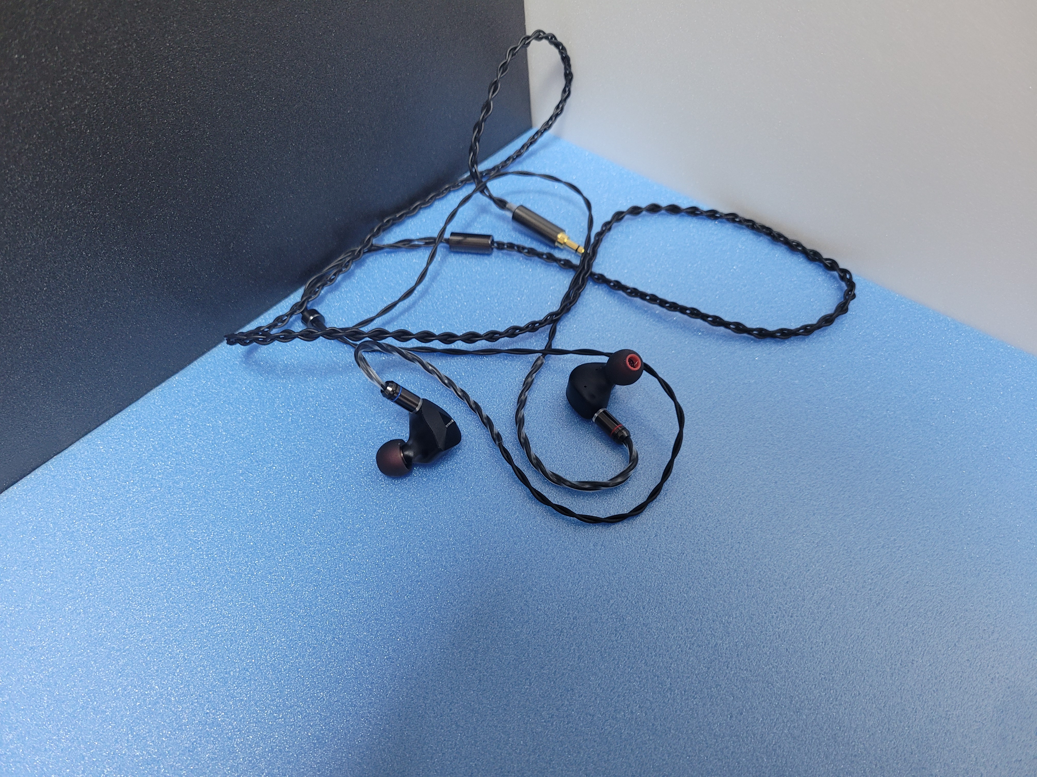 탕주 두보 이어폰의 번들 케이블은 세개의 줄이 꼬여 있는 형태 입니다. 유선 이어폰 같은 경우 단선이 되는 경우가 많은데, 이렇게 꽈배기 식으로 꼬아 놓은 케이블 방식은 내구성을 더 높여줄 것 같다는 생각이 듭니다. 케이블은 튼튼히 보입니다. 다만 이렇게 되면 이어폰 선의 무게가 증가할 수 있겠습니다.