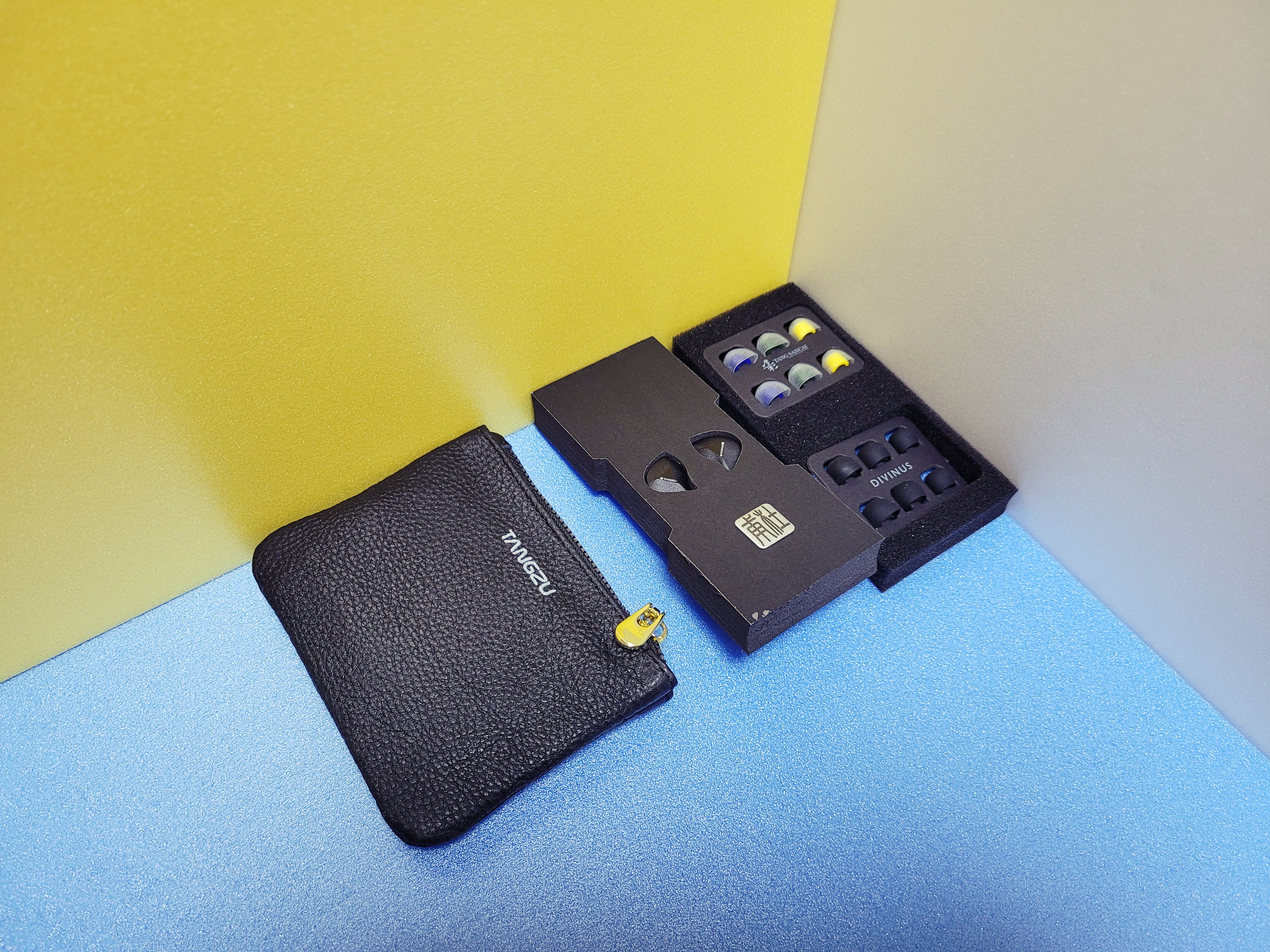 가장 왼쪽부터, 이어폰 케이스 역할을 하는 이어폰 케이스 지갑이 있고, 가운데에 이어폰 유닛 본체, 오른쪽에 탕주 두보 이어폰의 가장 장점이라고 할 수 있는 이어팁이 들어있습니다.