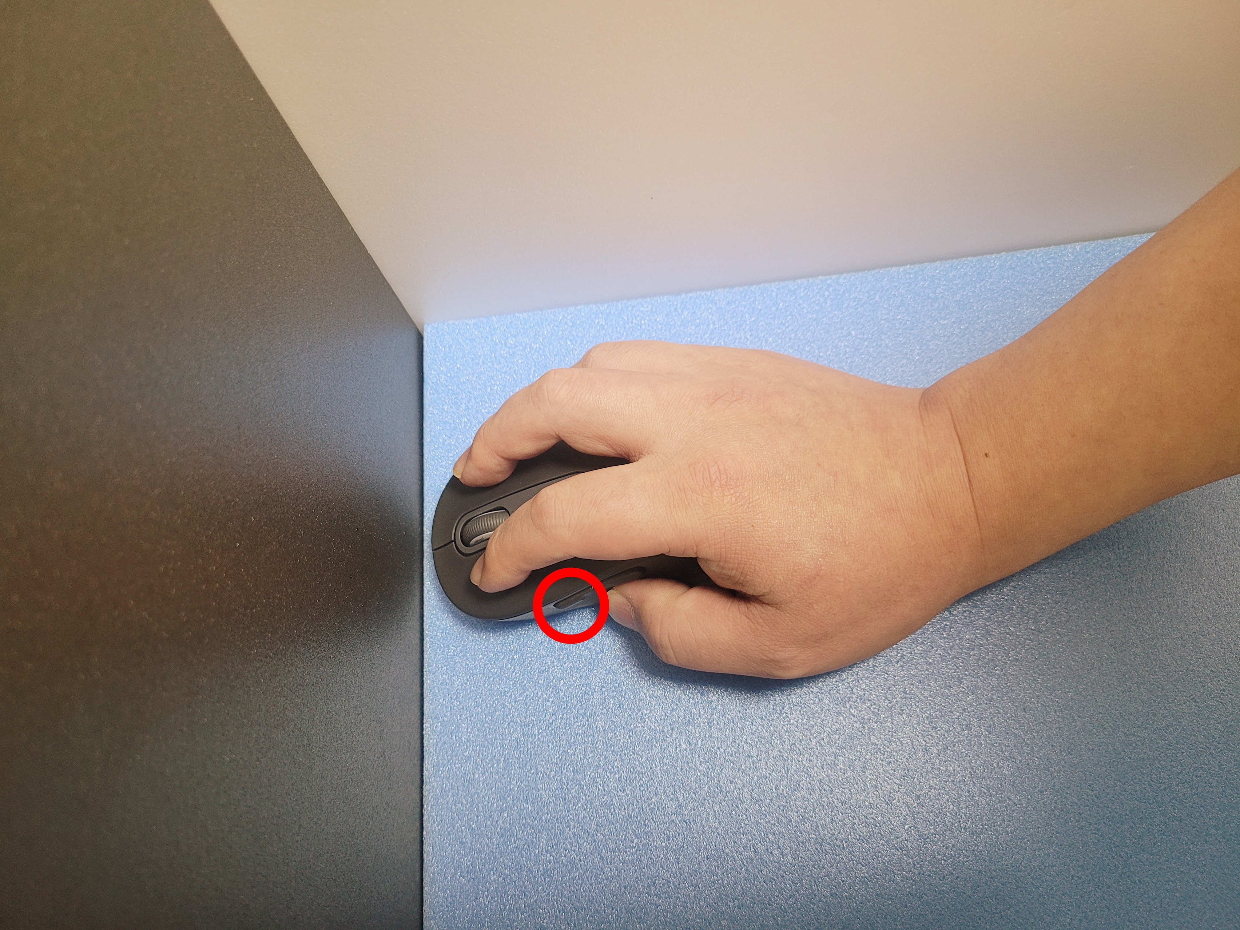 위의 마웃를 잡은 손 모양 사진을 보고, 손가락이 꽤나 멀리까지 뻗쳐진다고 오해하실 수 있는데, 제가 클릭하는 손가락의 부위를 표시해 두었습니다. 저 원 모양의 위치를 보시면 꽤나 마우스의 안쪽에서 클릭된다는 것을 아실 수 있을 겁니다.