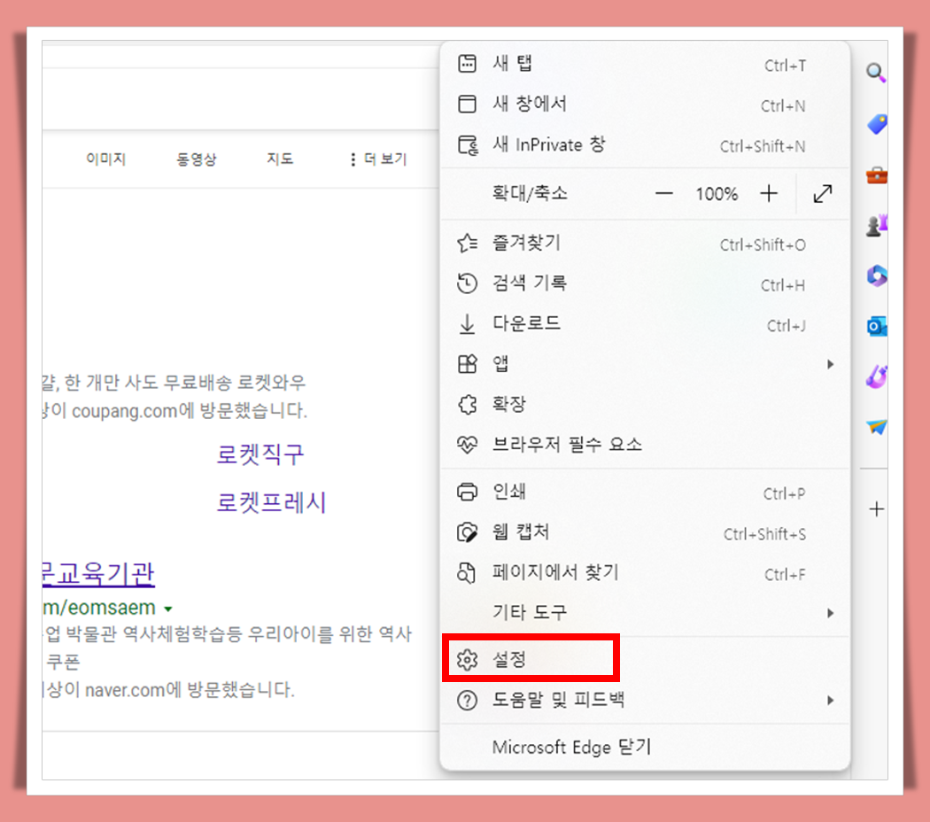첫째, 엣지브라우저 우측 상단에 있는 점 세개를 클릭해줍니다.