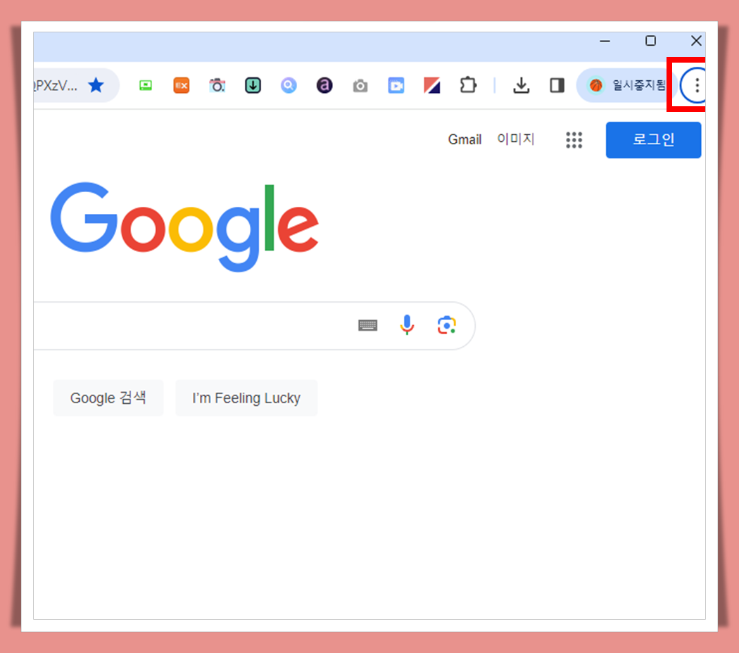 첫째, 크롬에서도 우측 상단에 있는 점 세개를 클릭해줍니다.