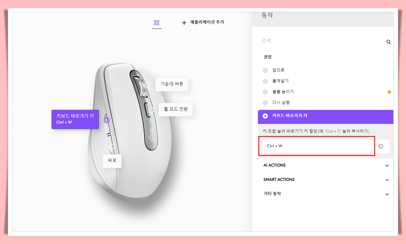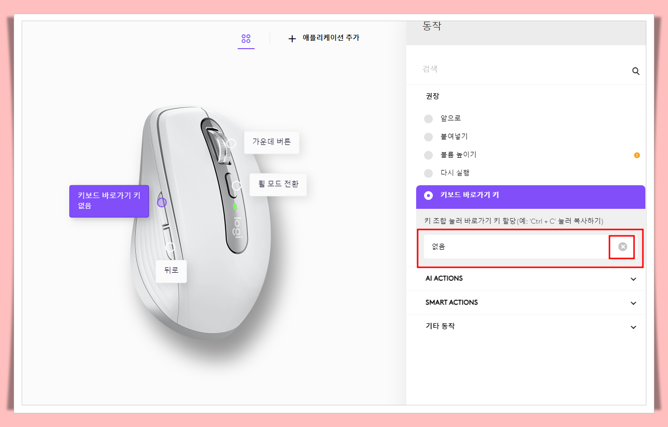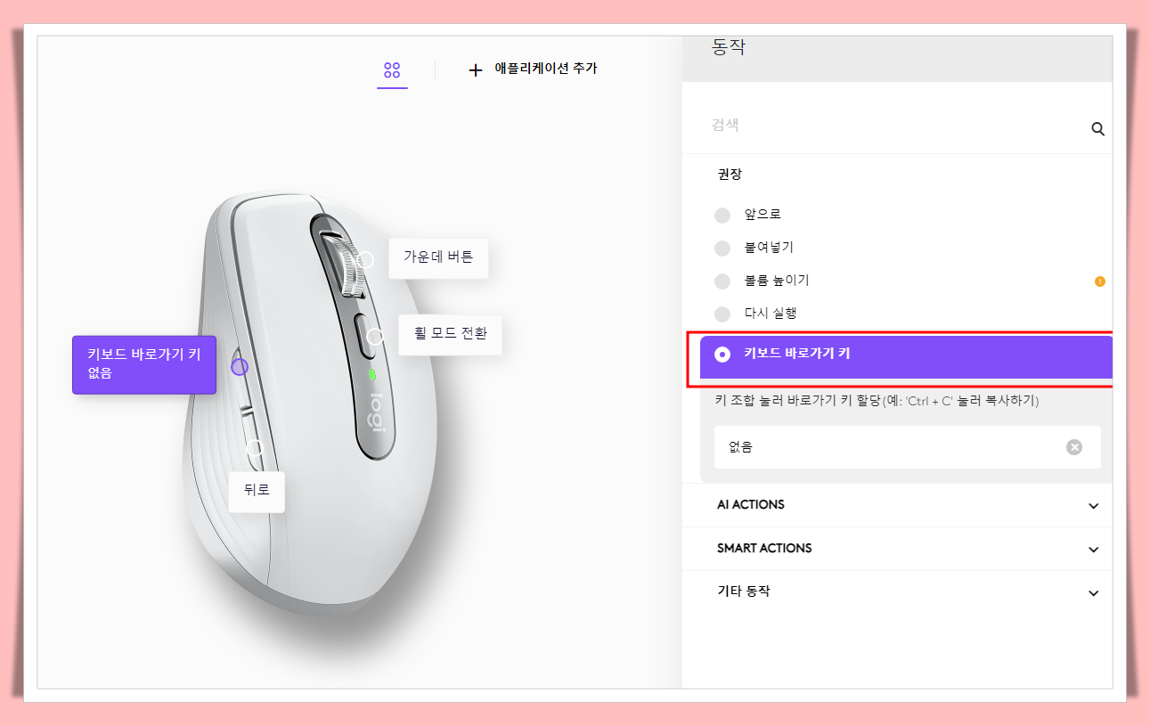 2. Logi Options+ 에서 단축키 설정 하는 방법