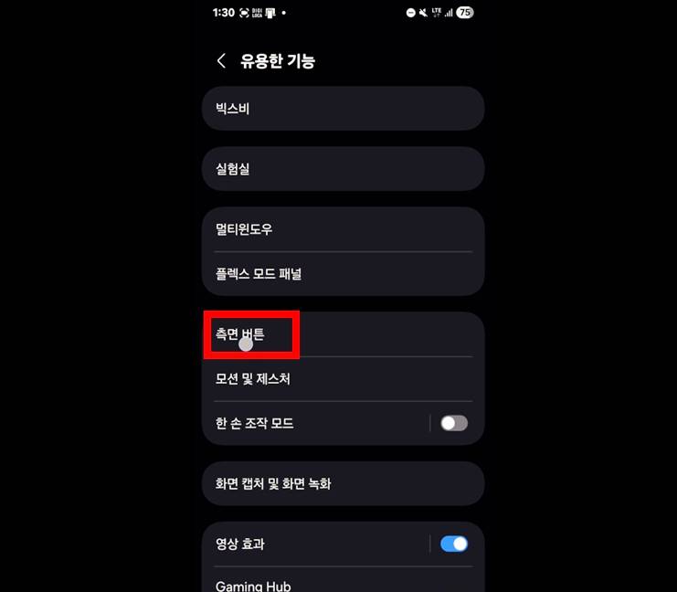 둘째, '측면 버튼' 이라는 메뉴를 눌러 줍니다.