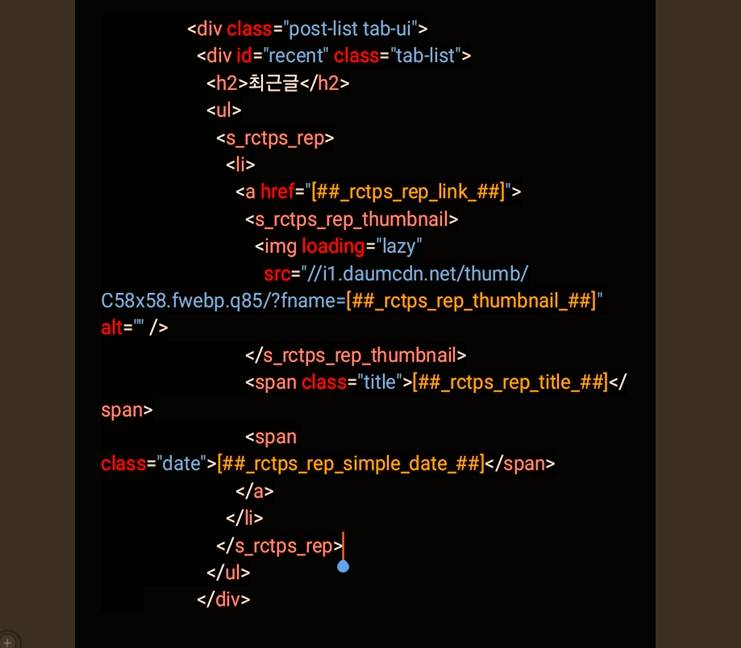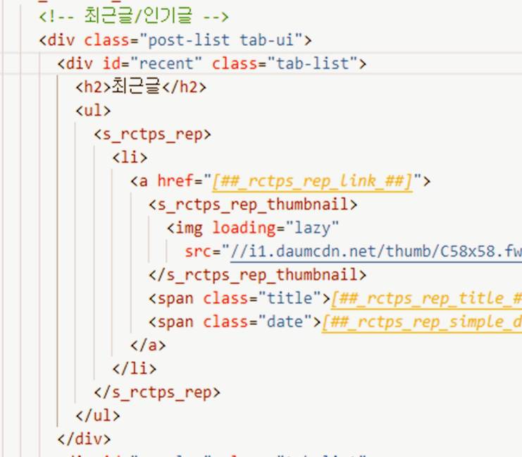 티스토리 스킨 html 의 일부를 하나 예로 들어보겠습니다.