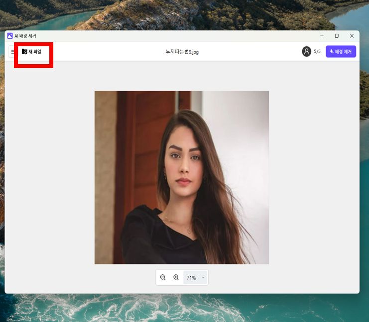 하지만 정 급하시다면, 아무거나 캡처하시고, 그 사진을 배경제거 안하셔도 되니까, 아까와 같이 AI 배경 제거 창까지만 띄우신 다음 그 창에서 새파일을 불러와서 자신이 원하는 사진파일의 배경 제거 작업도 가능합니다.